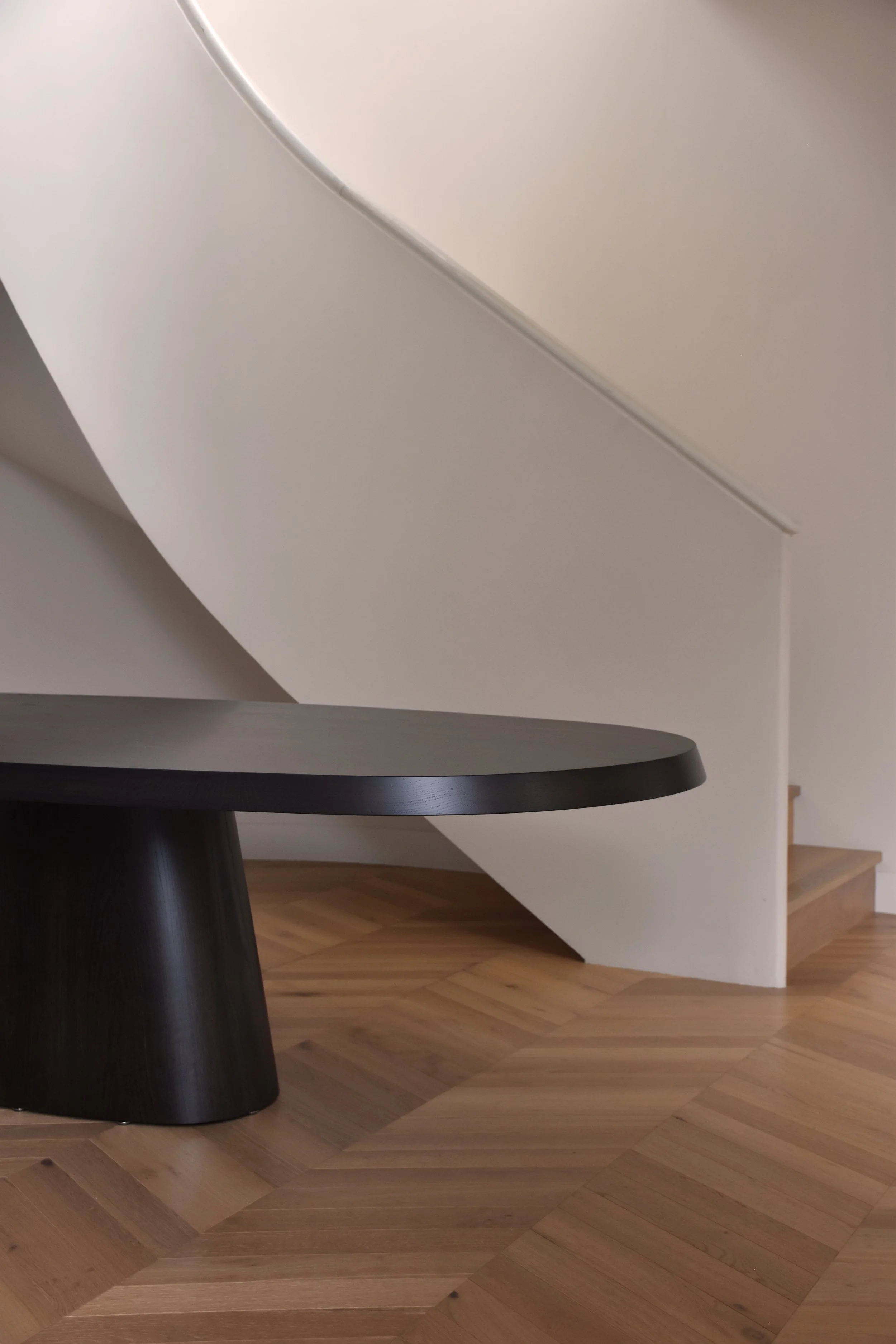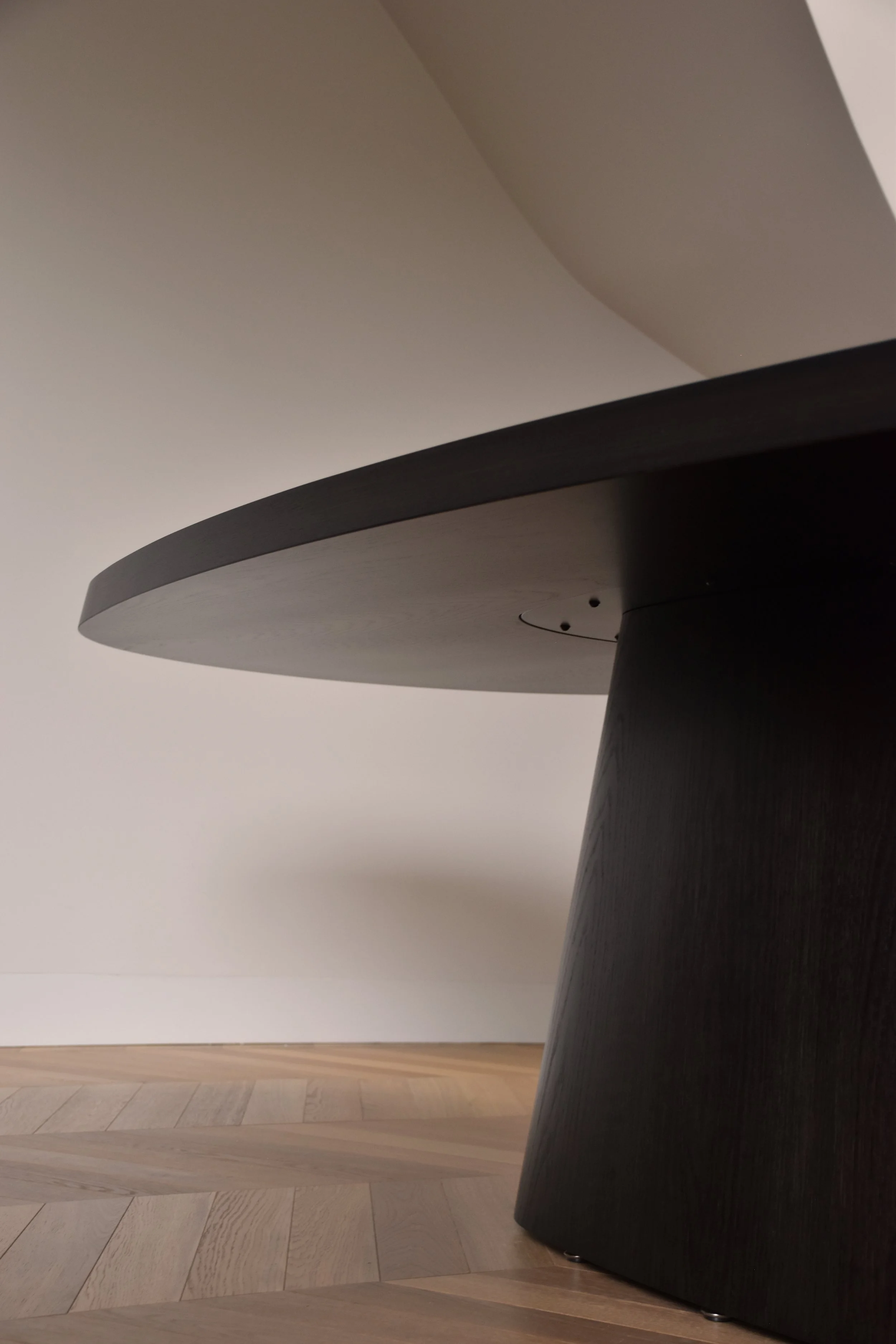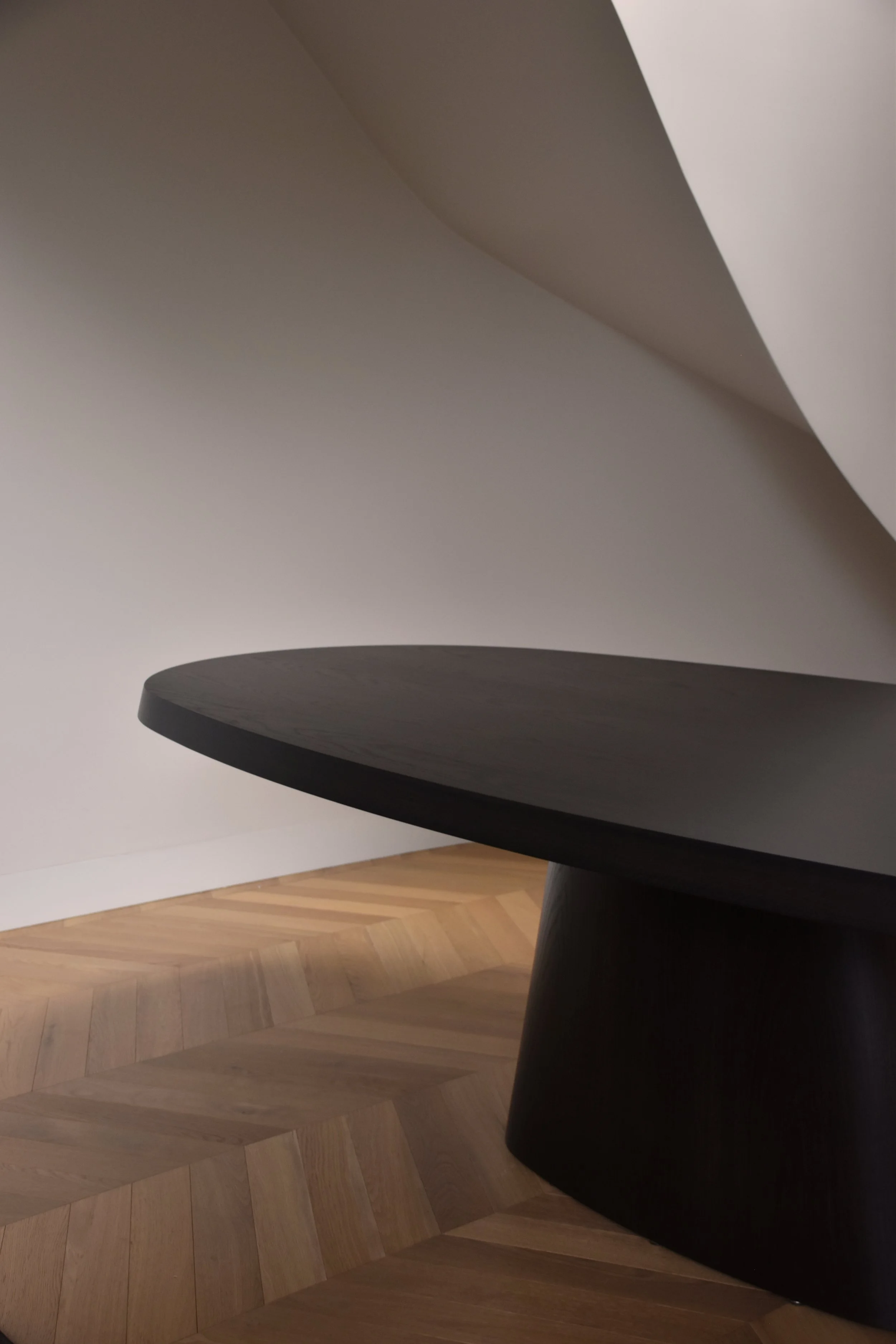 The Penelope Table was designed and developed for a beautiful Templeton Architecture home. The fluent form of the elliptical table top serves for an intimate dining experience while the 60mm table top profile provides a bold presence.